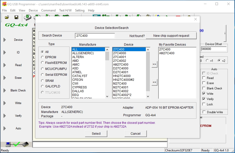 Make sure you choose either AM27C400 or 27C400.